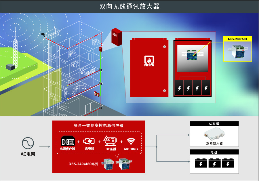 明緯自2000年投入導(dǎo)軌電源至今已擁有10~960W電源及相關(guān)配件模塊,產(chǎn)品線相當(dāng)完整并在導(dǎo)軌式標(biāo)準(zhǔn)電源市占已名列前茅。然而隨著城市化發(fā)展,小從一棟建筑,大到整座智慧城市,歐美中各國為了提高公共安全,分別制訂了安控消防系統(tǒng)安全規(guī)范(EN54-4/ UL2524/ GB17945),對此,明緯新推出了240W/480W多合一數(shù)字智能安控電源供應(yīng)器~DRS-240/ 480系列。
