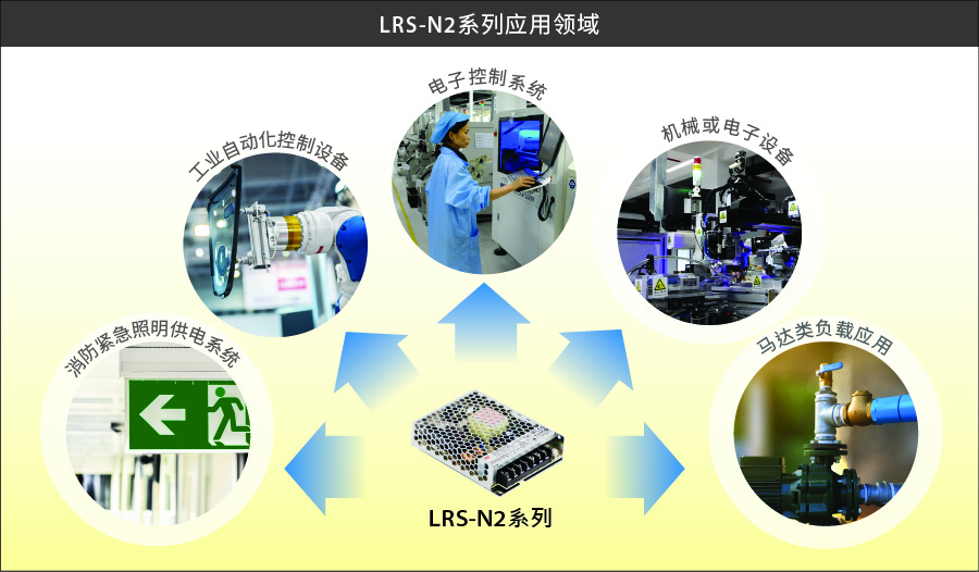 LRS-N2 系列除符合 UL/EN 62386-1 信息類認(rèn)證,亦符合工業(yè)電源類 EN 61558-1 OVC III 設(shè)計(jì)。整體來說,具 OVC III 設(shè)計(jì)的產(chǎn)品較適合工業(yè)設(shè)備使用,可直接從配電箱接線并節(jié)省需額外透過一級隔離變壓器的使用成本。此系列符合信息類及工業(yè)電源雙認(rèn)證可協(xié)助客戶縮短認(rèn)證申請,可搭配各種電子設(shè)備或機(jī)械設(shè)備使用,如機(jī)械手臂、馬達(dá)類負(fù)載、咖啡機(jī)、消防緊急照明供電系統(tǒng)等。若您有設(shè)備需求具備 200% 瞬間峰值功率的應(yīng)用方式,可選用 LRS-N2 系列產(chǎn)品或請與明緯業(yè)務(wù)團(tuán)隊(duì)做聯(lián)系。