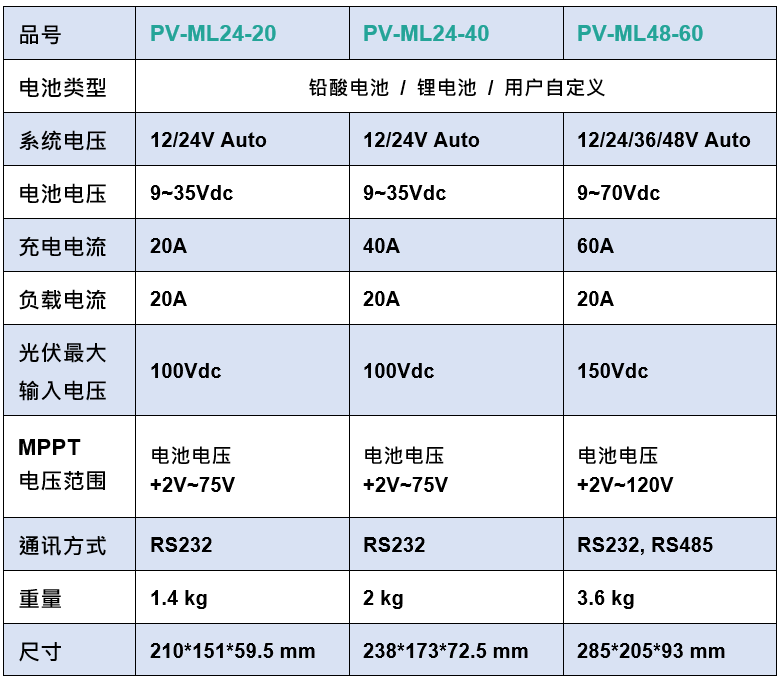 PV-ML 系列:20~60A MPPT 太陽(yáng)能控制器