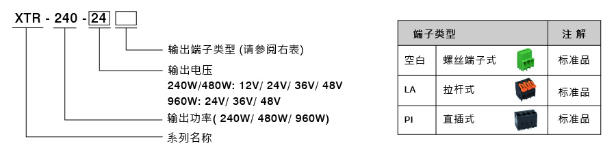 XTR-240/ 480/ 960系列:240W/ 480W/ 960W全新世代3?輸入超薄高效耐用導(dǎo)軌電源