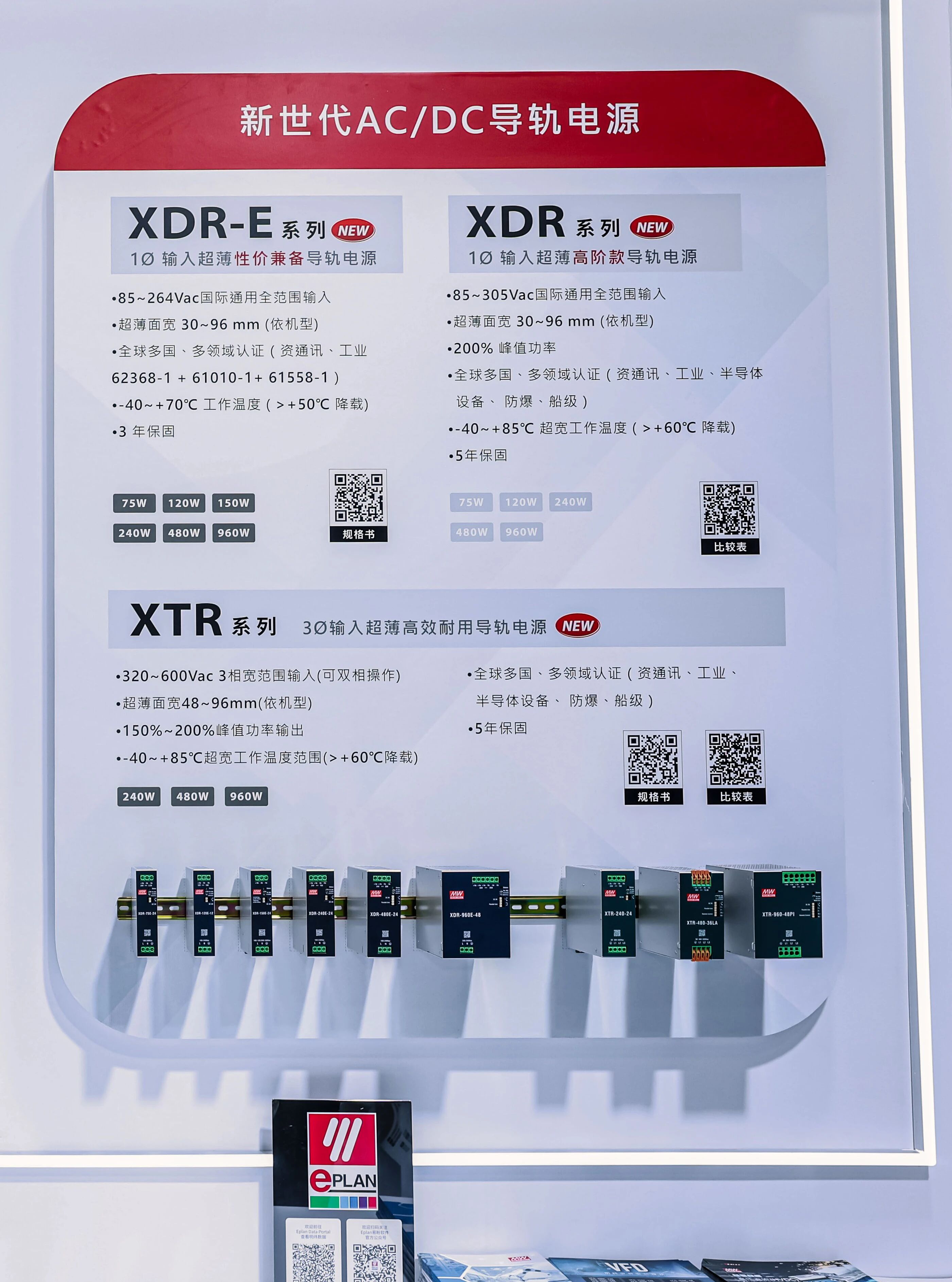本屆工博會(huì)上,明緯電源重點(diǎn)展示了新世代超薄導(dǎo)軌電源XDR系列、內(nèi)建PFC小型化機(jī)殼型電源NSP系列等前沿電源產(chǎn)品,聚焦綠色能源與智能化的技術(shù)創(chuàng)新。
