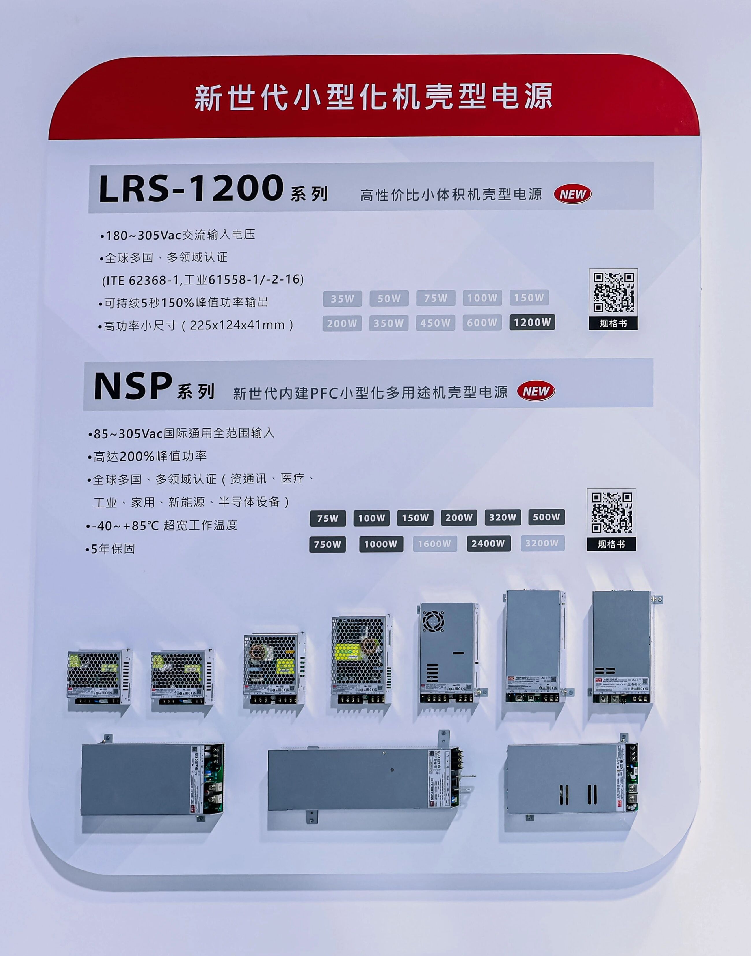 NSP系列也是本次展會(huì)的又一“吸睛”之作,該產(chǎn)品聚焦小型化需求,功率涵蓋75~3200W,適用于空間受限的工業(yè)場景,大幅提升電源利用率,并擁有IT E62368-1、醫(yī)療60601-1、家電 60335-1、工業(yè)61558-1/2-16;61010-1、逆變器62477-1等多領(lǐng)域全球安規(guī)認(rèn)證。