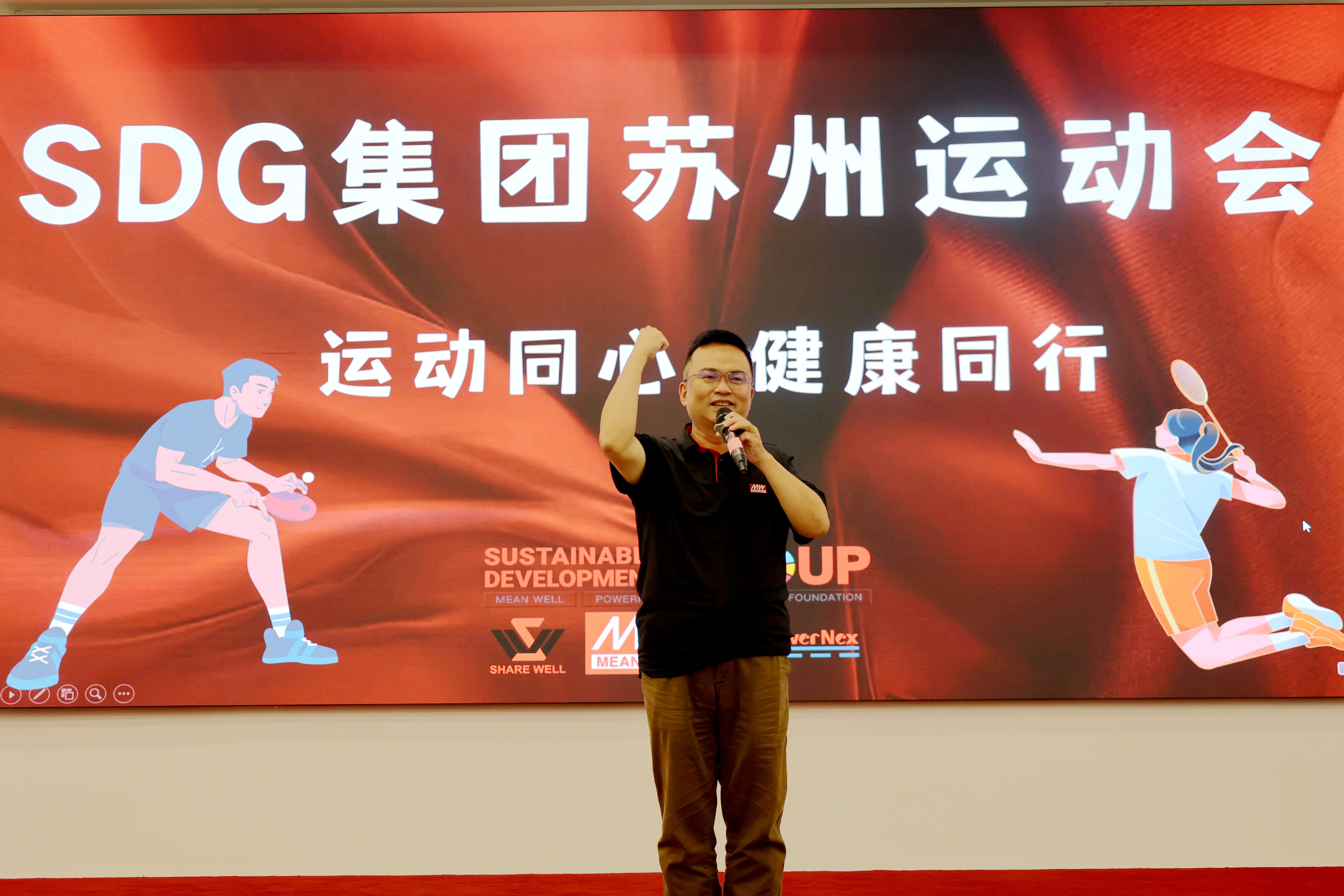 蘇州明緯副總經(jīng)理何馬超先生作開場(chǎng)致詞。他表示,舉辦企業(yè)運(yùn)動(dòng)會(huì),是SDG集團(tuán)豐富員工文化生活、增強(qiáng)大家的體質(zhì)、促進(jìn)團(tuán)隊(duì)協(xié)作,提升集體凝聚力的重要舉措。希望我們將團(tuán)結(jié)協(xié)作、頑強(qiáng)拼搏的體育精神融入到工作和生活中,為公司的發(fā)展貢獻(xiàn)自己的力量!