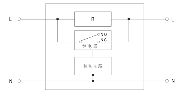ICL-16的線路方塊圖如圖一所示,是由三個(gè)方塊所組成,方塊一是水泥電阻R,這排除了負(fù)溫度系數(shù)熱敏電阻會(huì)因溫度上升降低阻值的問(wèn)題。方塊二是繼電器,其作用是將水泥電阻短路,減少損耗。至于繼電器什么時(shí)候要短路,就是由方塊三控制電路來(lái)決定。