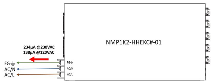 據(jù)測試結(jié)果顯示,NMP1K2-HHEKC#-01在230Vac時(shí)的漏電流為234μA,遠(yuǎn)低于四臺MSP電源856μA的總漏電流。因此,NMP1K2-HHEKC#-01的漏電流可以滿足消費(fèi)性電子設(shè)備的500μA~750μA的漏電流要求。