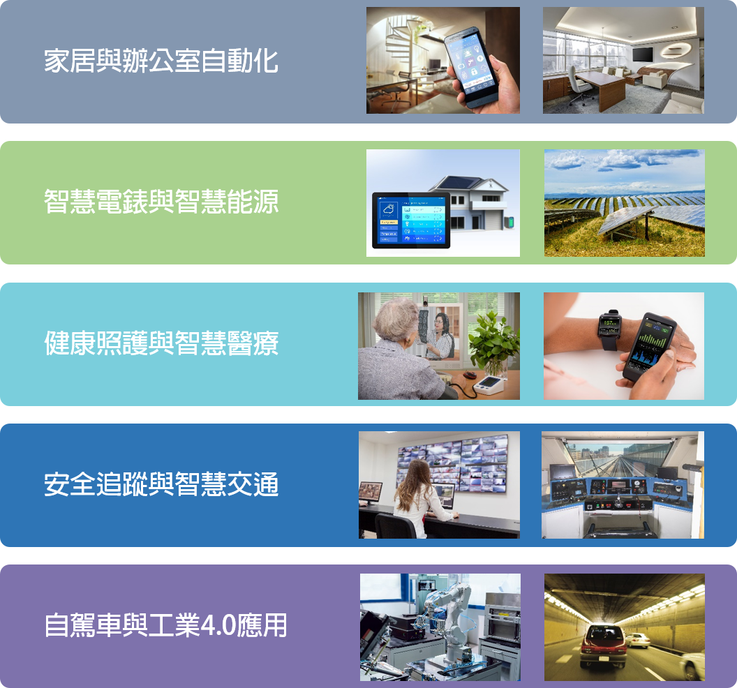 隨著5G時代的來臨,物聯(lián)網(wǎng)(Internet of Things)主流應(yīng)用朝向家居與辦公室自動化、智能電表與智能能源、健康照護與智能醫(yī)療、安全追蹤與智慧交通以及自駕車與工業(yè)4.0應(yīng)用等方面發(fā)展。