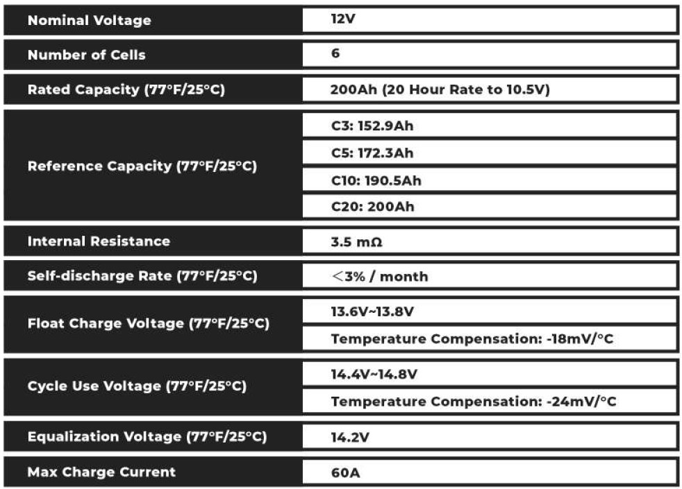 此案例應(yīng)用在12V/200Ah鉛酸電池的充電,鉛酸電池的規(guī)格如下。