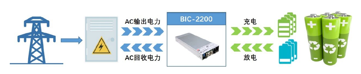 隨著“凈零碳排”目標(biāo)的推進(jìn),新能源汽車、光伏等產(chǎn)業(yè)不斷發(fā)展,帶動(dòng)鋰電池產(chǎn)業(yè)規(guī)模持續(xù)擴(kuò)大。在鋰電池產(chǎn)業(yè)發(fā)展中,無論是在生產(chǎn)端的充放電測試,還是到家用儲(chǔ)能系統(tǒng)的備用能源,雙向電源都扮演了不可或缺的角色。明緯雙向電源 BIC-2200 系列適用于各類電池生產(chǎn)工廠。在電池化成與分容階段(如圖1.),使用 BIC-2200 對電池充電,同時(shí)也可將電池釋放的能量回饋至電網(wǎng)供其他 AC 設(shè)備使用,降低企業(yè)用電成本。