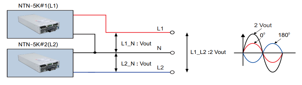 明緯新推出的 NTN-5K 是一款 5000W 高可靠離網(wǎng)正弦波的 DC-AC 逆變器,內(nèi)建交流充電器和 UPS 功能 (交流旁路)。搭配電池適用于住宅、商業(yè)、船舶、汽車、礦山、建筑工地與沒有市電的偏遠地區(qū)。除了可單相使用外,也可以使用 3 臺并按照以下的配接方式組成三相四線式電源,應用于三相四線 (L1/L2/L3/N) 設備或分別配接相電壓 (L1/L2/L3-N) 于單相設備。
