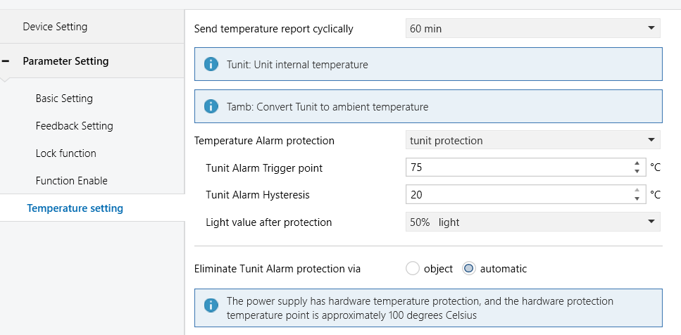 該功能透過記錄 LED 驅(qū)動的輸出功率和效率,推算出在 10 分鐘至 1 周內(nèi)的能耗情況,并將數(shù)據(jù)回饋給 KNX 系統(tǒng)管理端,幫助用戶優(yōu)化能源預算。